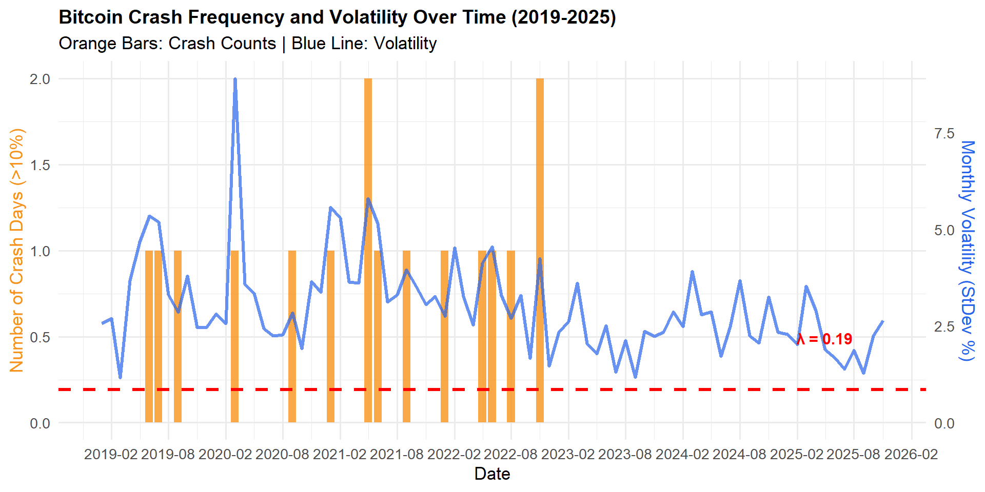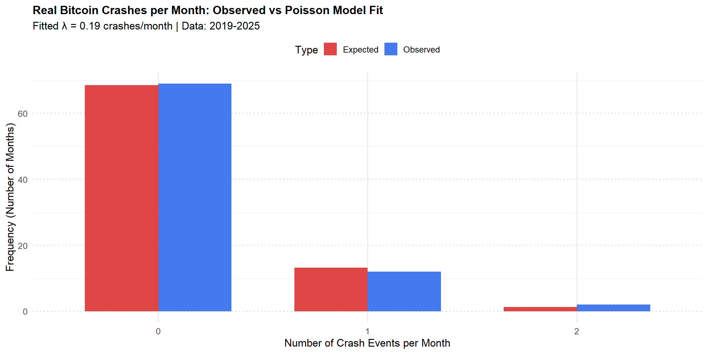 caption: html`<span style="color: #2563eb;">โโโโ</span> Binomial(n, p) <span style="color: #dc2626;">โโโโ</span> Poisson(ฮป=np)`