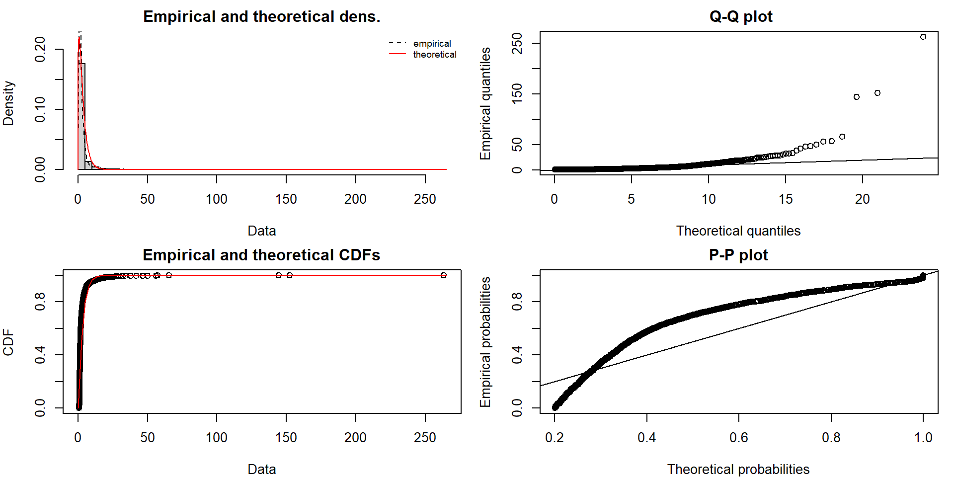 Reserve Estimation: The gamma model with \(\alpha \approx 1.3\) captures realistic fire insurance loss patterns: most claims are moderate, with a long tail for major fires requiring substantial reserves.