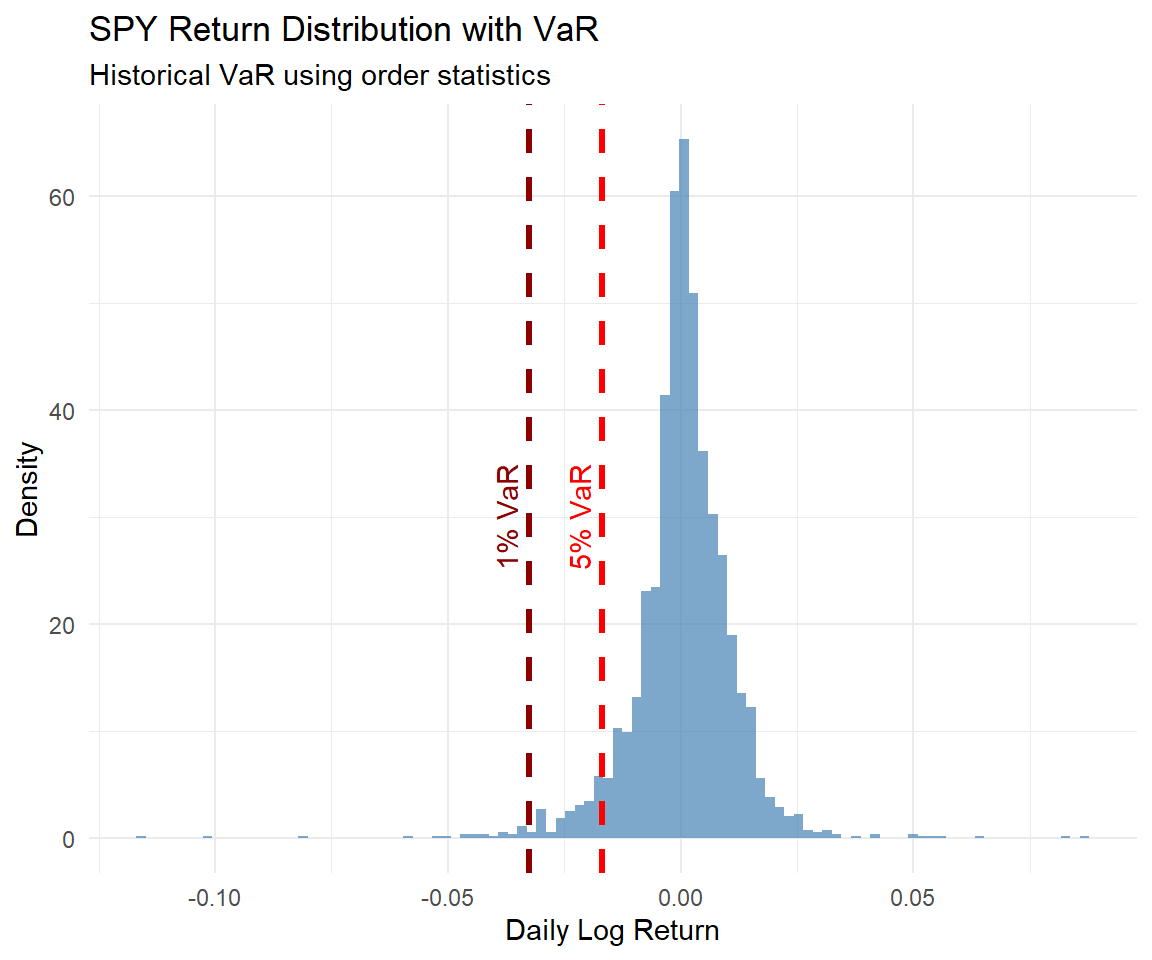 5% VaR = \(Y_{(k)}\) where \(k = \lceil 0.05n \rceil\)