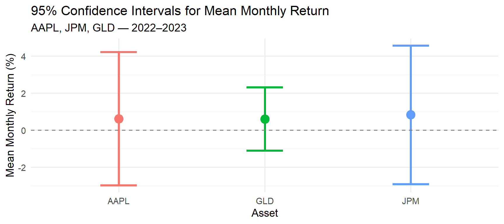 Problem 1 (Large-Sample CI): A random sample of \(n = 200\) bond funds yields mean annual return \(\bar{y} = 6.8\%\) with \(s = 4.2\%\). Construct (a) a 90% CI and (b) a 99% CI for the true mean return. Compare and interpret. (Wackerly ยง8.6)